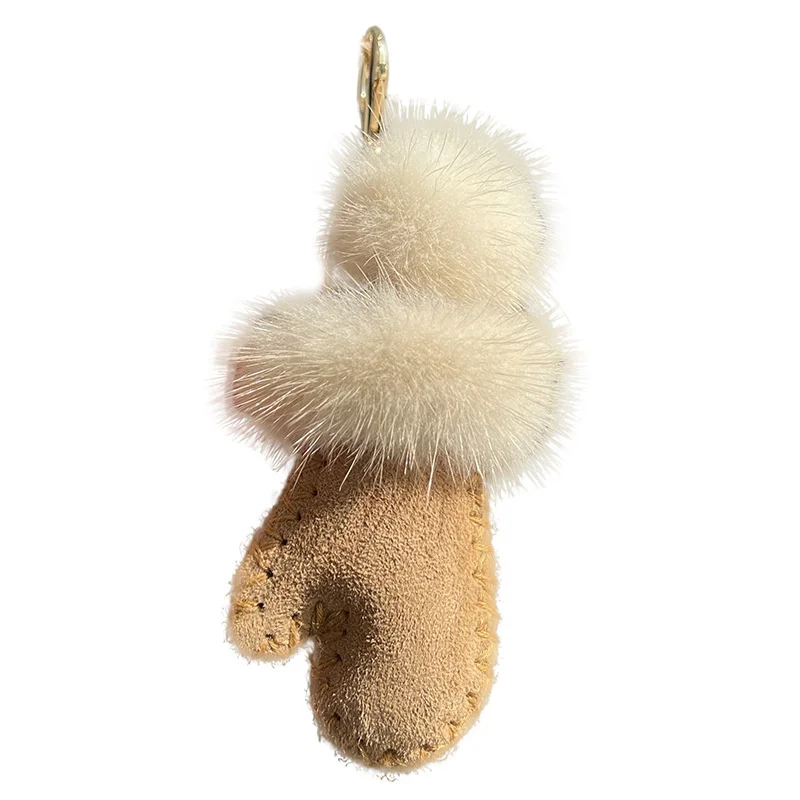 Porte-clés de luxe en fourrure de vison pour sac à main, sac à dos, pendentif