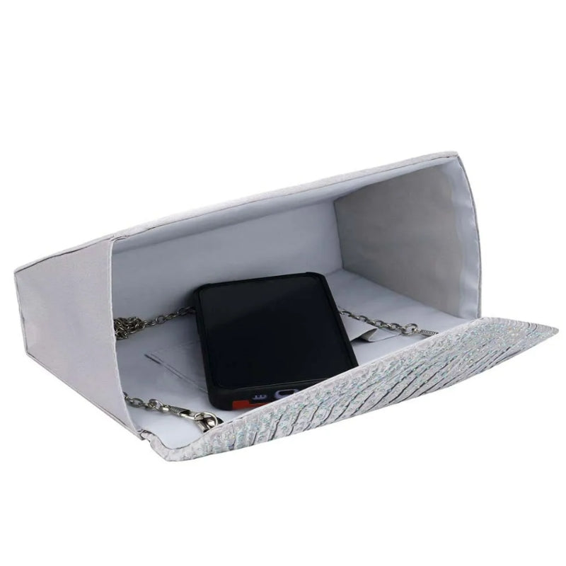 Qu’il soit porté à la main ou en bandoulière, le sac ou pochette pour un mariage sait s’adapter à vos envies tout en mettant en valeur votre grâce naturelle. Inspirée des dernières tendances, sa chaîne argentée et son design épuré le rendent parfaitement adapté aux occasions spéciales, faisant de chaque moment une occasion mémorable à travers le prisme de la mode et de la distinction.