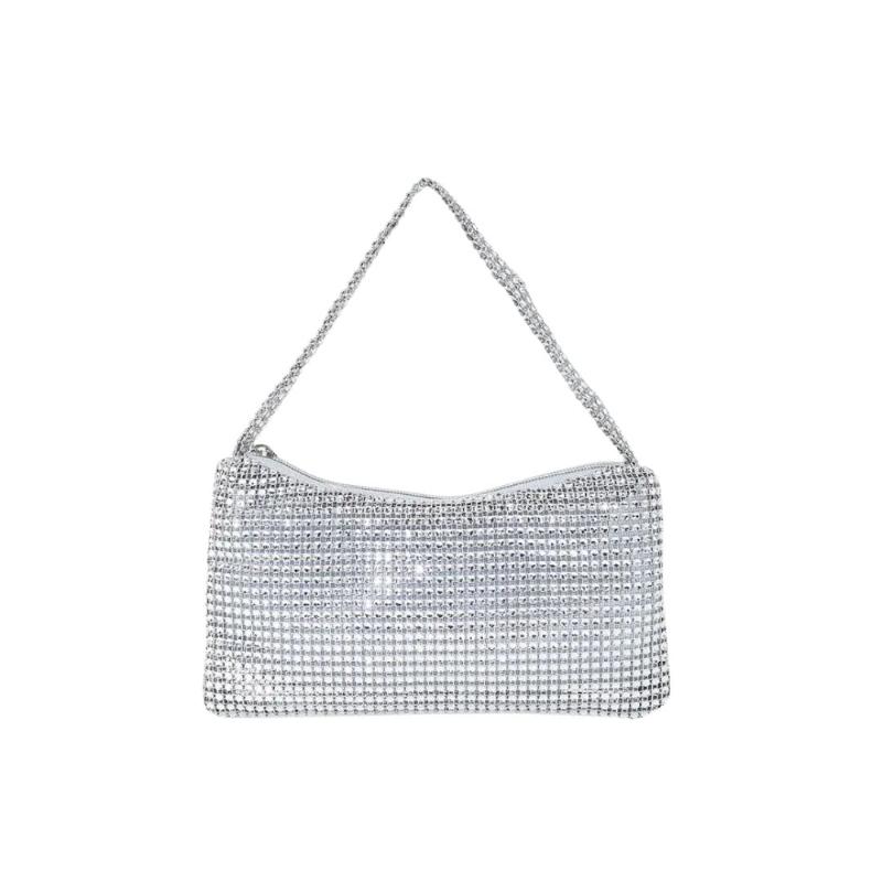 - Spécificités : Anse courte assortie en strass, fermeture éclair argentée, doublure grise